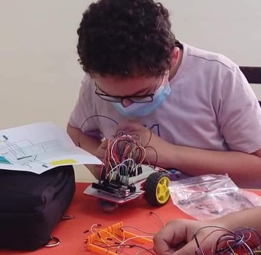 نقدم تعليماً متميزاً في البرمجة والروبوتات، مع ورش عمل تفاعلية لتطوير مهارات الأطفال في التركيب وتوصيل الدوائر الإلكترونية ، مع متابعه فرديه لكل طالب .